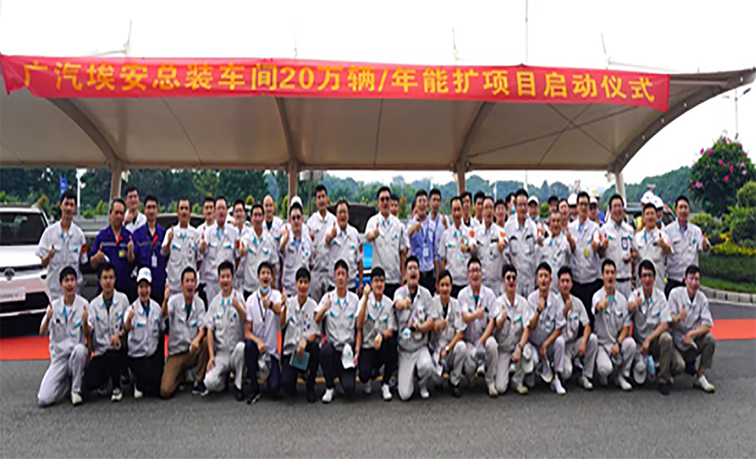 2021年8月4日上午,廣汽埃安新能源汽車有限公司智能生態(tài)工廠總裝車間、焊裝車間迎來了20萬輛/年能擴項目的啟動儀式。上海翌耀科技有限公司董事長助理、投資部總經(jīng)理馬強(原上海愛夫迪自動化科技有限公司,下簡稱翌耀科技)作為供應商代表出席了本次啟動儀式并致辭。至此,廣汽埃安兩大車間能擴項目正式進入設備安裝階段,并計劃在2022年2月中旬建成具備20萬輛/年產(chǎn)能的生產(chǎn)車間。